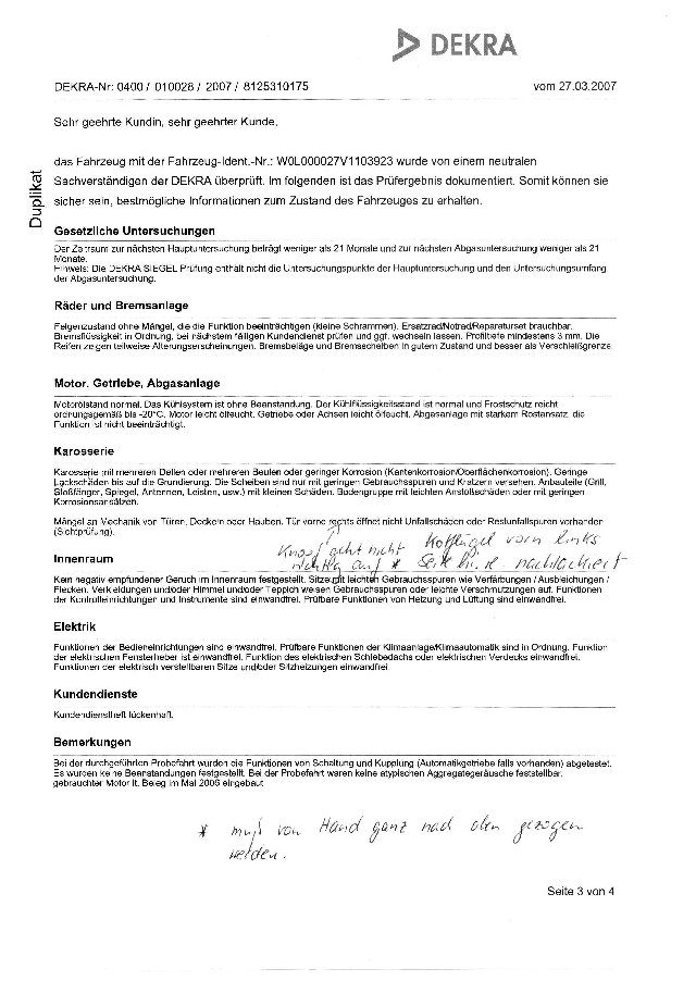 Ich wollt ja morgen meinen neuen Omi abholen.Die Freundliche hat mir grad einen Dekra bericht zukommen lassen.