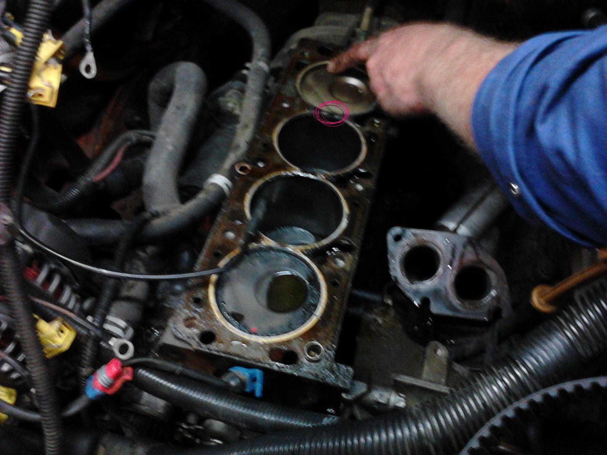 Ok sagte. Er kann er sich nicht erklären aber , der Kopf ist "Plan" nur die Kopfdichtung ist zwischen dem 3 und 4 Zylinder von vorn aus gesehen kaputt. SIehe Bild 1
