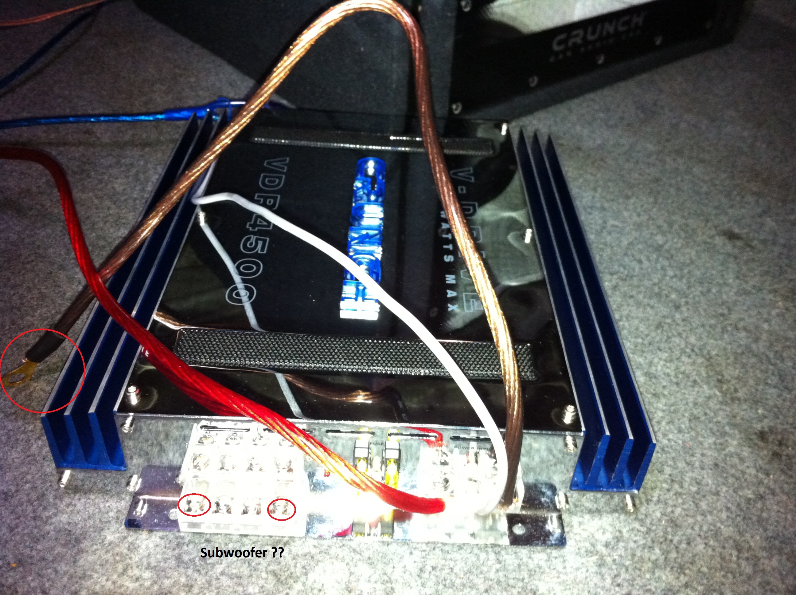 An welchen Stecker kommt der Subwoofer dran?Und wie schliesse ich das rote Kabel an der Batterie an?