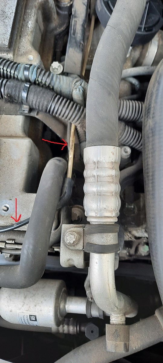 die dünnen Unterdruckschläuche, die AGR, Luftklappen, Turboverstellung etc. steuern sind mit Profil-Schläuchen verbunden, T-Förmig, 90Grad - Bögen... Bei mir hat sich der C - Förmige Schlauch (2x90Grad) an der Unterdruckpumpe verabschiedet.