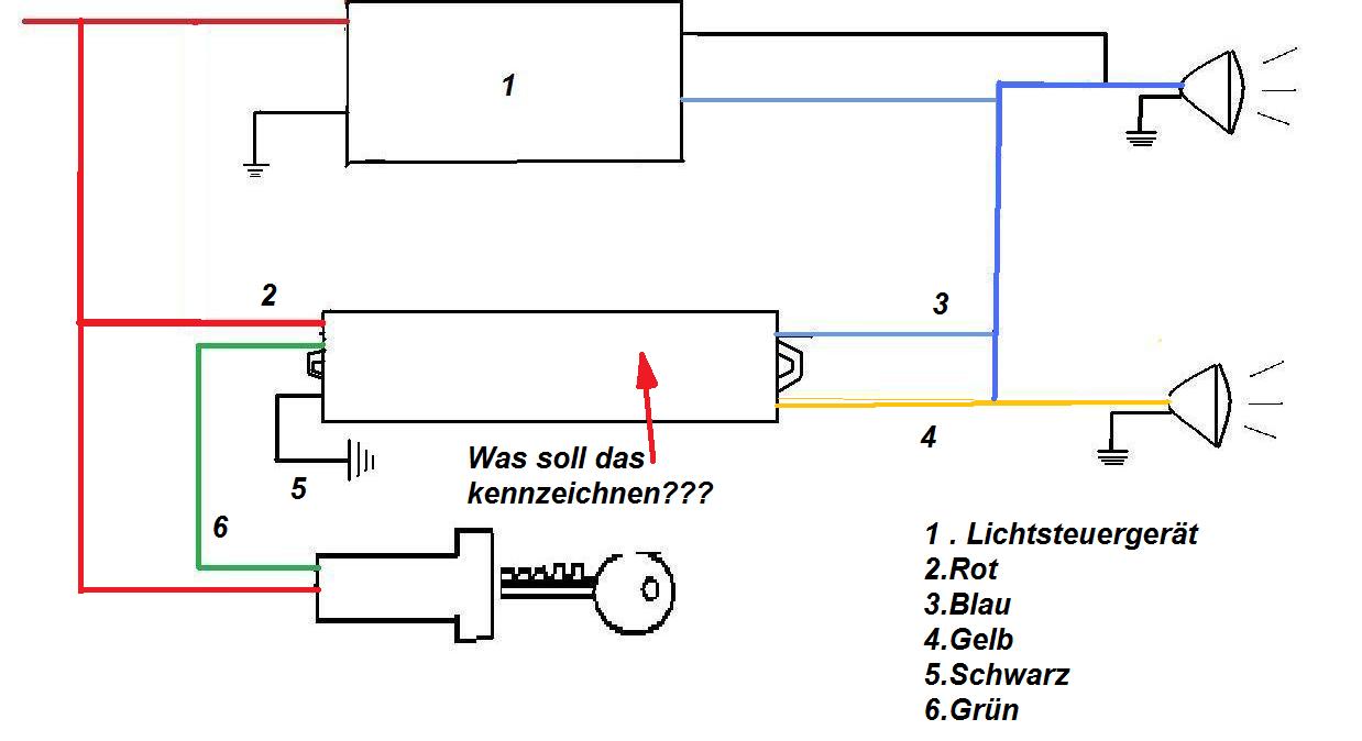 ich wollte bei meinen Omega ein Lichtsteuergerät anschließen und weiß nur das man das grüne Kabel an die Lichtmaschine gehört,das rote Kabel an die Batterie ,das Schwarze Kabel ist Masse.
