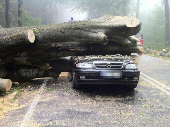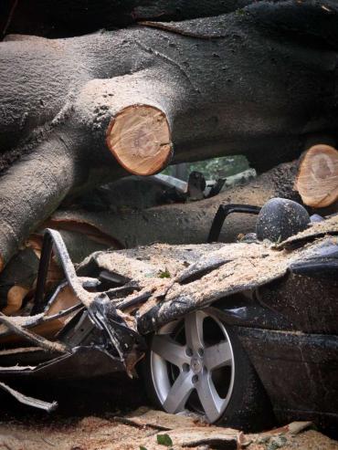 Opel Omega wurde von einem der Bäume regelrecht erdrückt.
