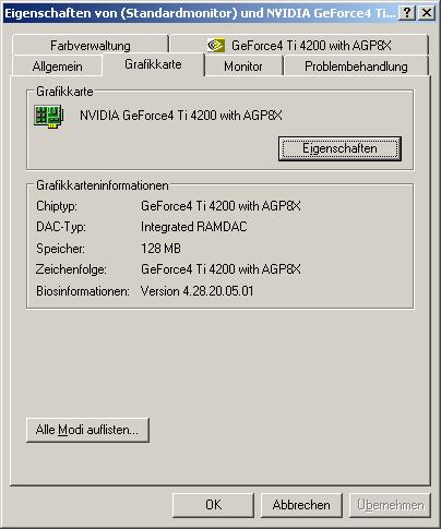 geh mal auf deinen desktop -> rechte maus taste -> eigenschaften -> reiter -> Einstellungen -> Reiter Grafikkarte schau mal was dort steht.