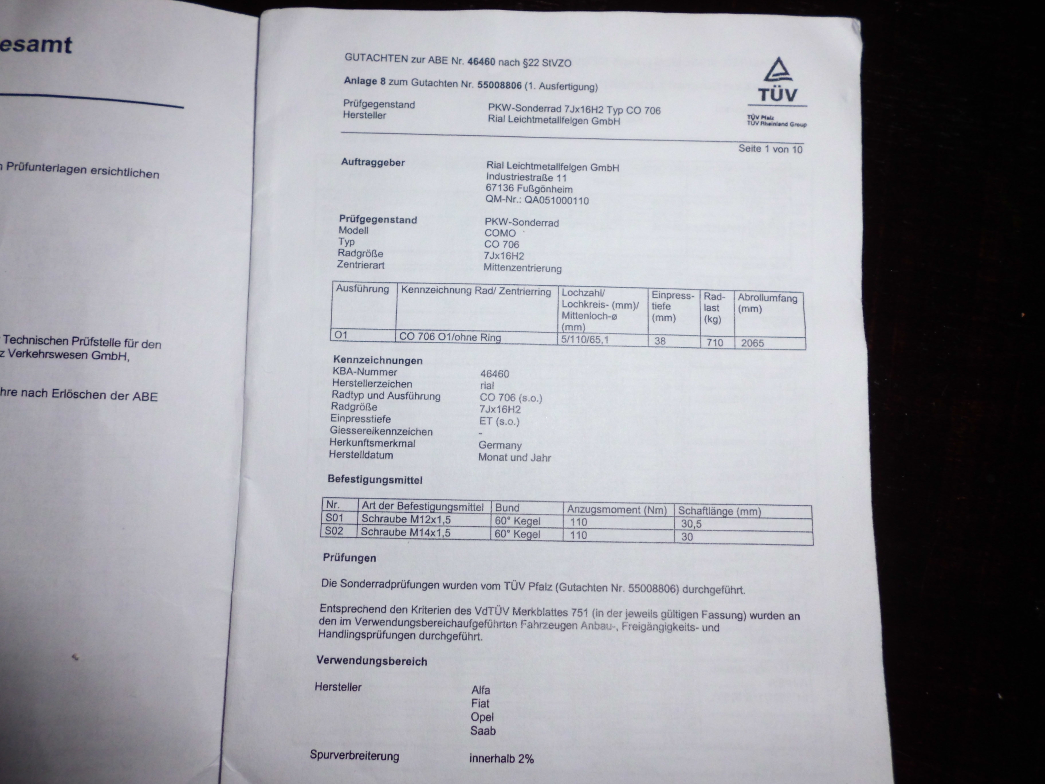 passen die scheiben hier mit den Como's ? 7J x 16h2
